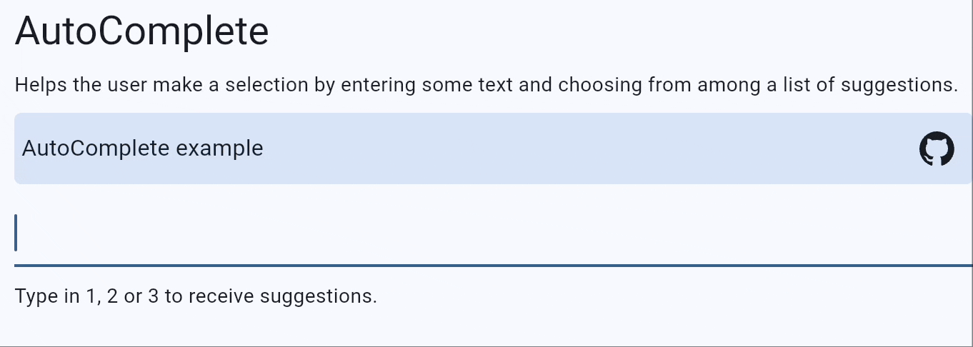 AutoCompleteSuggestionmust have at least akeyorvaluespecified, else it will be ignored. If onlykeyis provided,valuewill be set tokeyas fallback and vice versa.