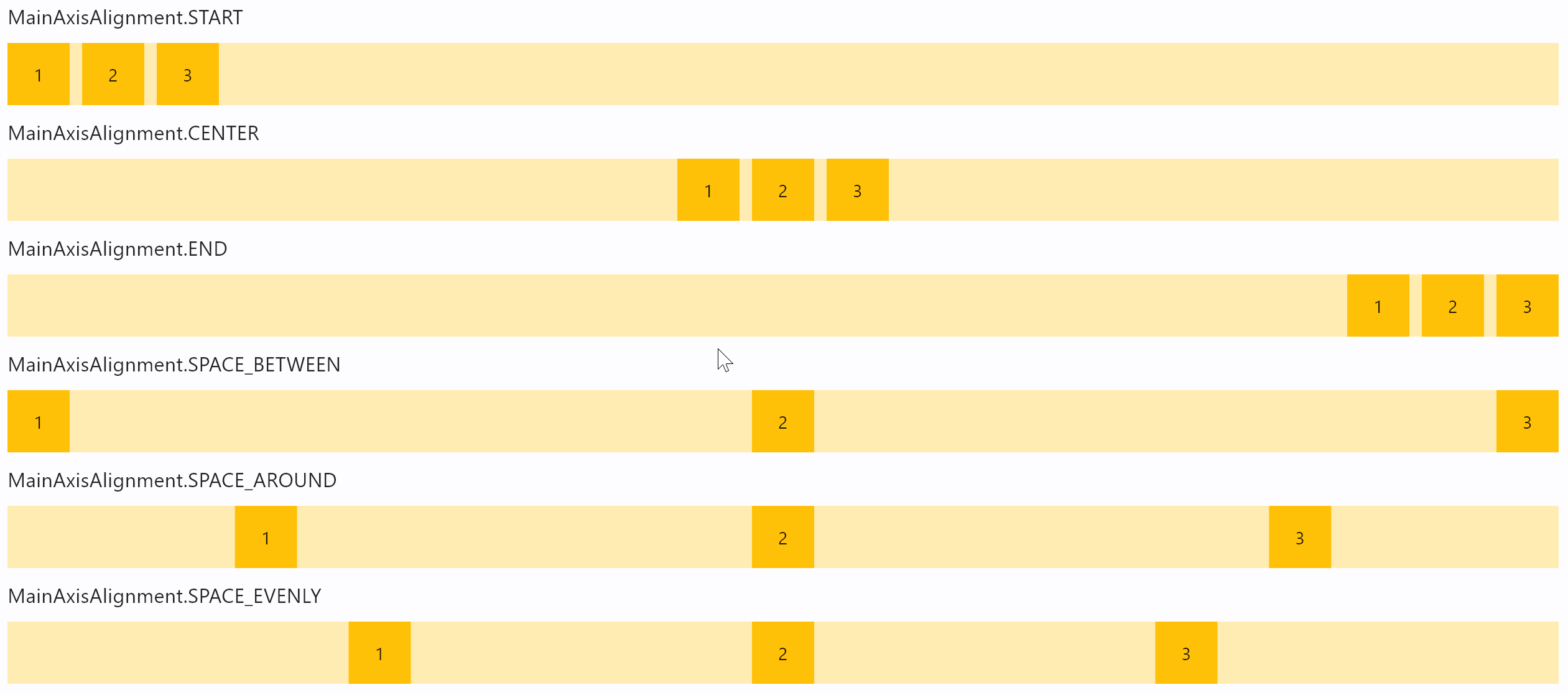 RowWithAlignment(ft.MainAxisAlignment.SPACE_AROUND),